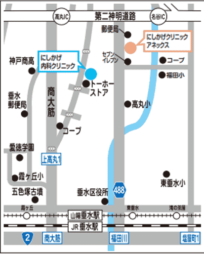 ご案内 | 当院「糖尿病・腎透析にしかげクリニックアネックス」と、千鳥が丘3丁目にあります本院「にしかげ内科クリニック」を間違えてご来院されるケースが多くみられます。 ![]() |